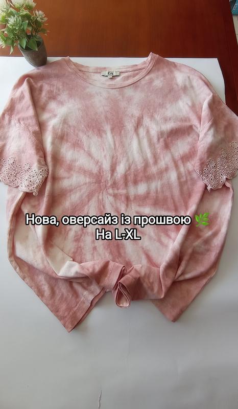📍 Натуральный оверсайз футболка с прошвой от C&A, принт тай-дай 💕 Новая без бумажной бирки.