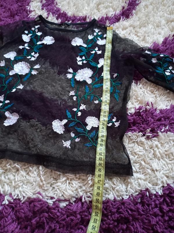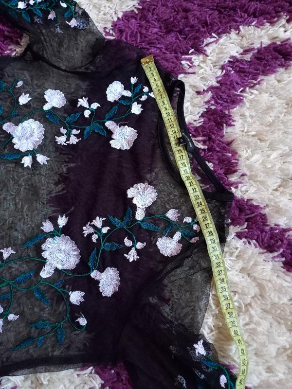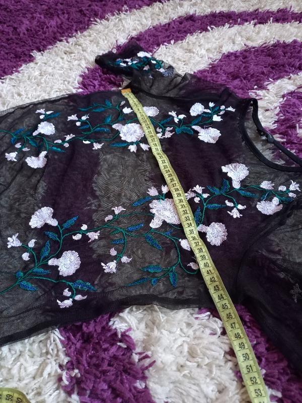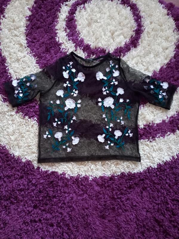 Футболка сетка с вышивкой new look/футболка с вышивкой цветов. черная сетка. блуза сетка