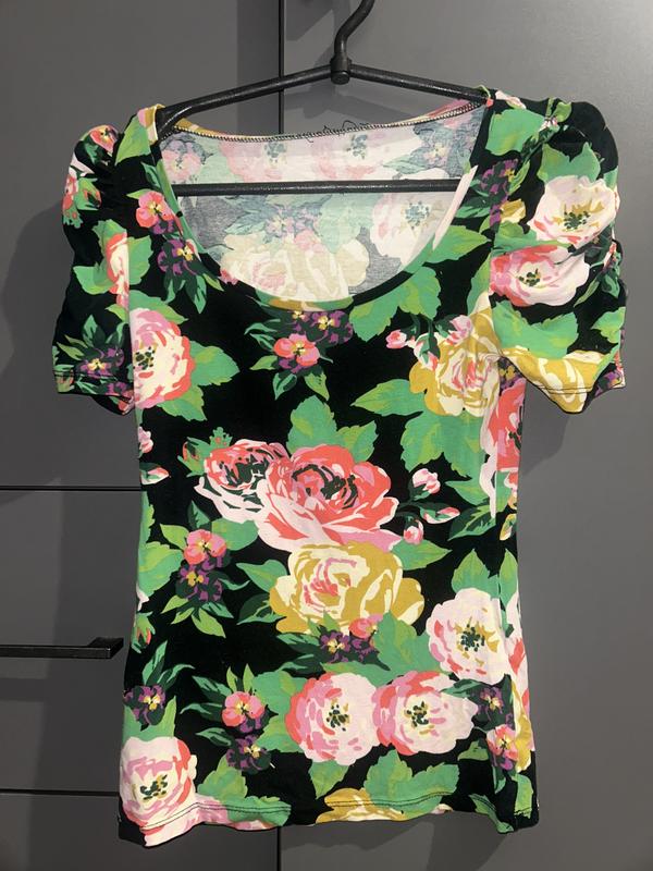 Распродажа!Футболка с красивыми рукавами100% хлопок Сток стан идеал 5/5Длина-54смПолуобхват груди- 36 до 56 см тянется свободно