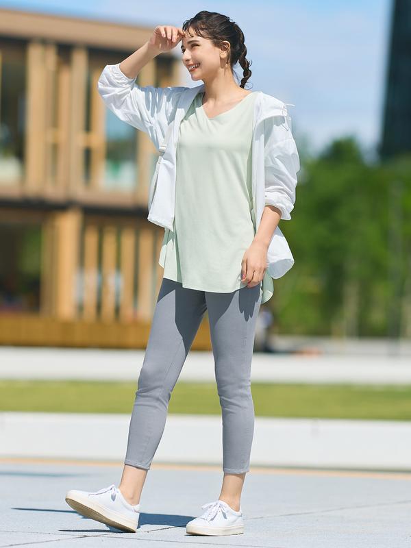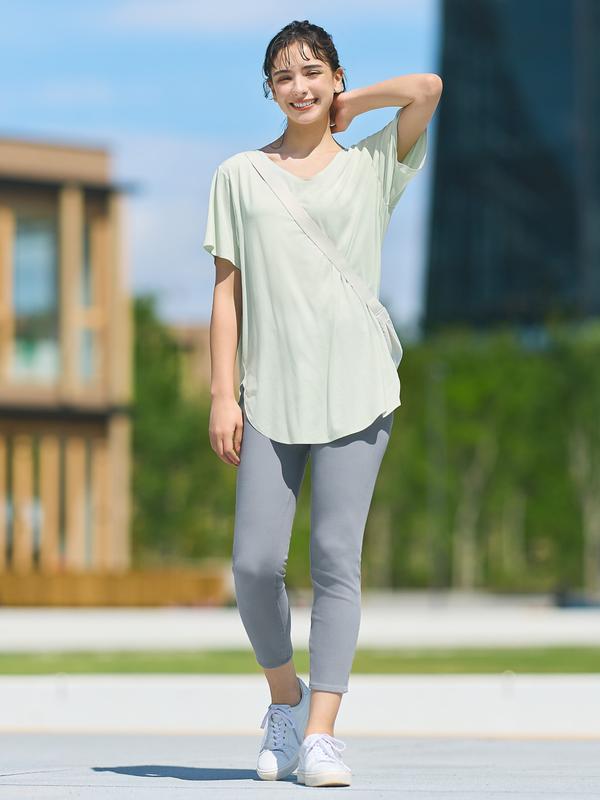 AIRism Seamless V Neck Longline T-Shirtлегка гладка тканинаподовжена, прикриває стегнапідходить для йоги, легких видів спорту та повсякденного одягу