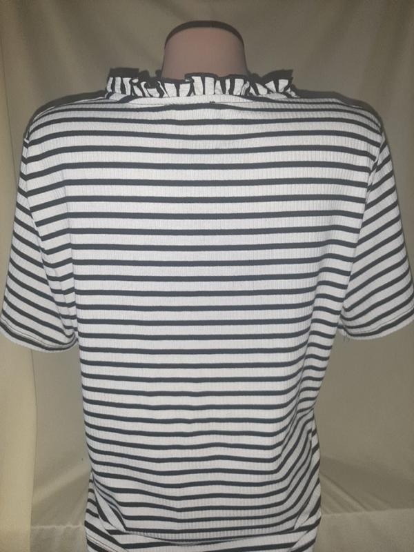 Футболка в рубчик и в полоску, с рюшами, размер UK 18 : ПОГ - 56см+ тянется до 66, ПОТ - 54+, рукав - 22см, длина - 62см