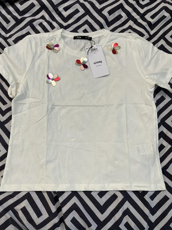В наличии женская футболка, размер М, новая, из магазина синсей, декорирована,