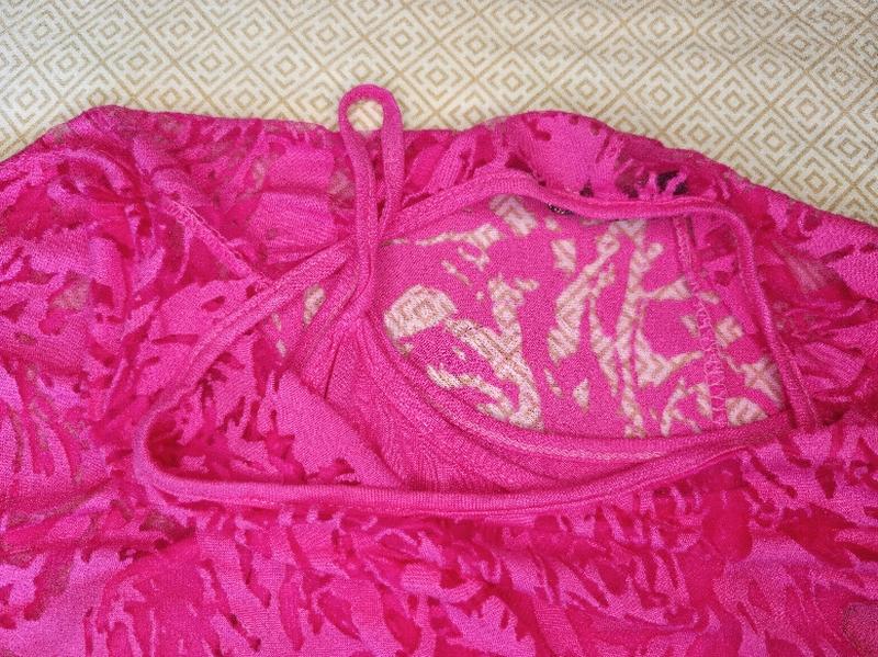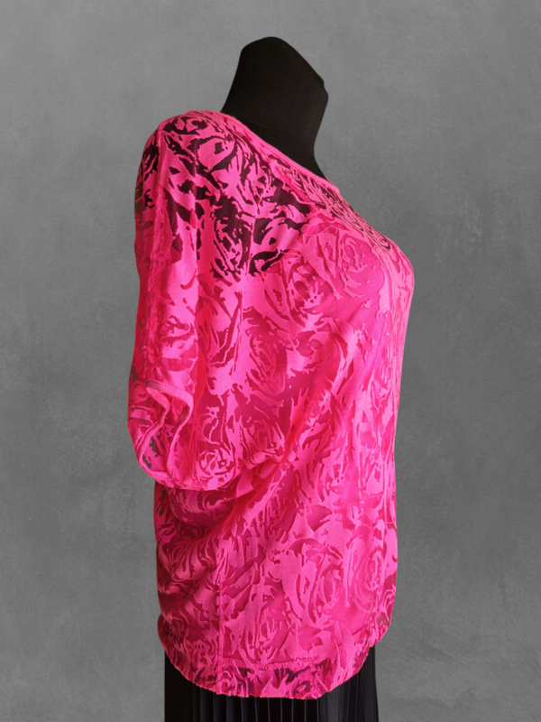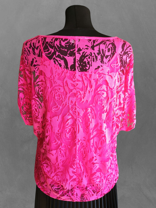 • Стрейчевая прозрачная сетка цвета фуксии с романтичными розами.
