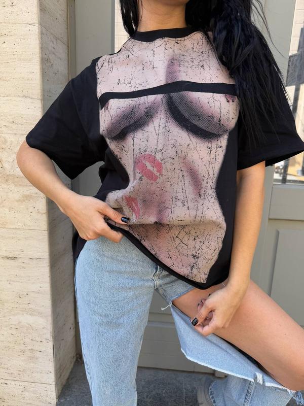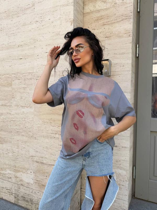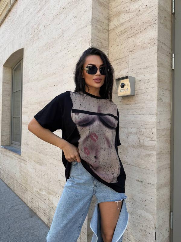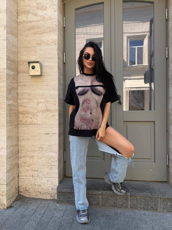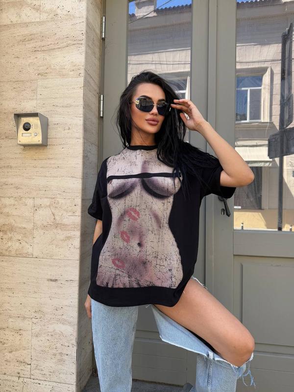 Стильная футболка UNISEX с модным принтом (качественный накат). В свободном фасоне оверсайз. Из дорогой ткани, не теряет цвет.