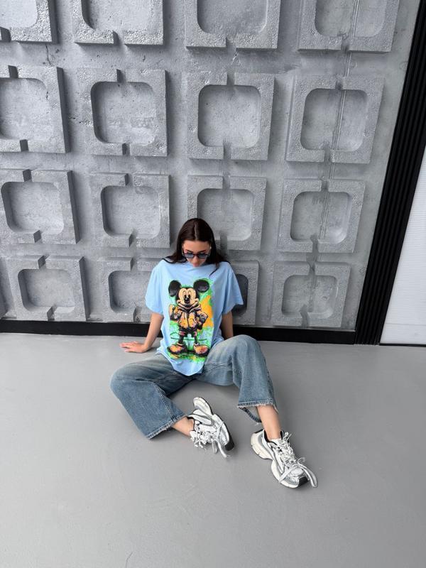 🔝 new collectionФутболкаМодель: 2209Размерный ряд: 42-48 универсал Тканина: коттон Цвета: белый, черный, голубой Объем груди 110 смДлина 60 см