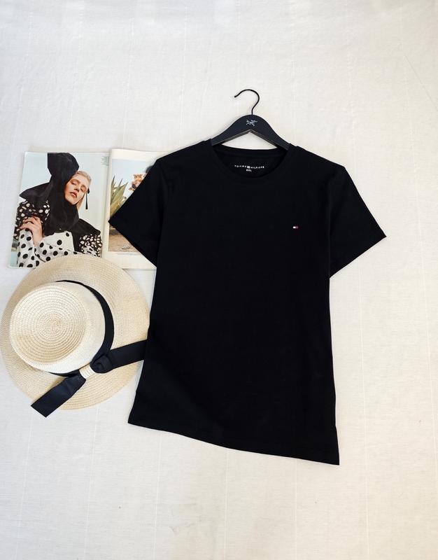 🌿черная базовая футболка Томми прямого кроя, ткань коттон Размер:XXL Замеры:ПОГ 58 см, длина 66 см