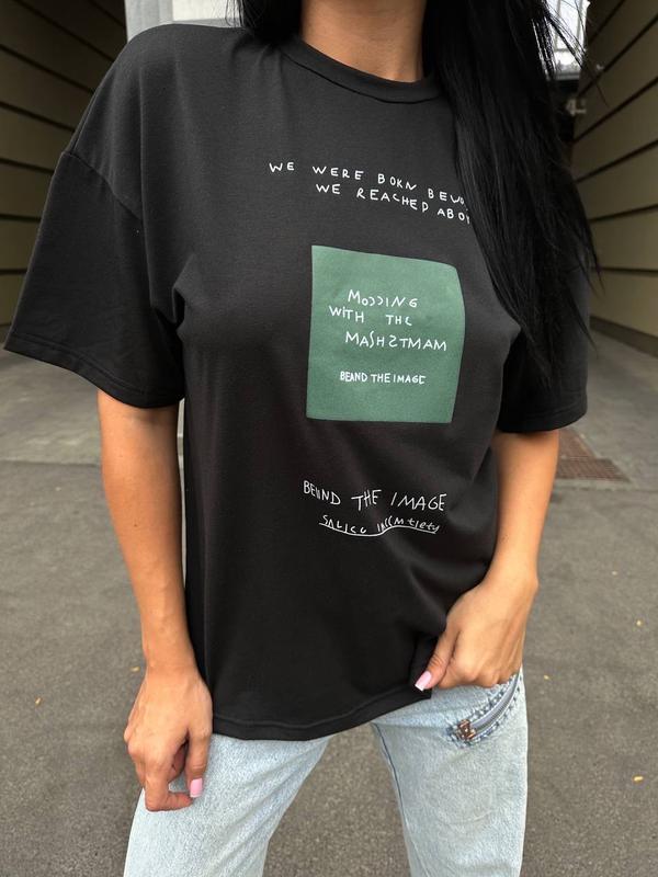 Чорна оверсайз футболка з принтом