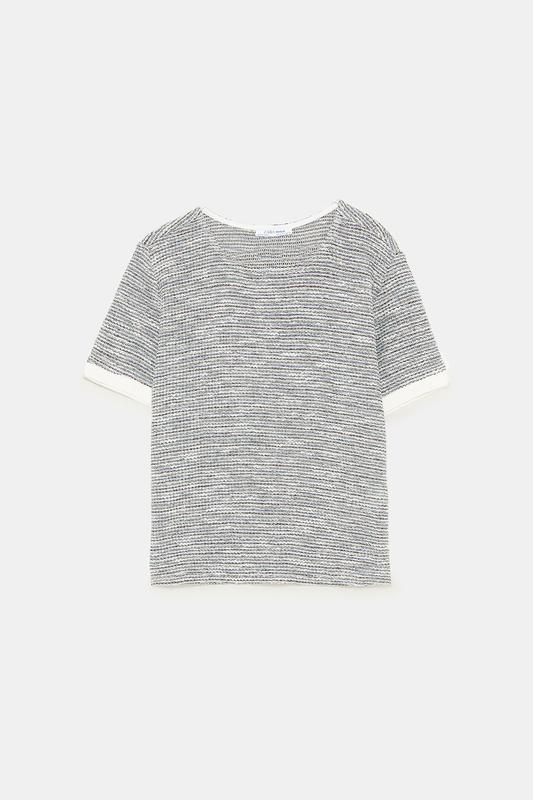 Тренд сезона!! Вязанные женские футболки от Zara Испания. Всегда актуальный меланж!! Мягкая приятная ткань!! Украшены серебренной нитью.