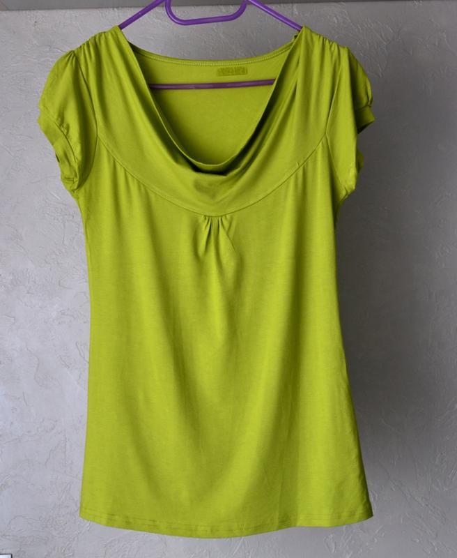 Турецкая футболочка в хорошем состоянии,красивого цвета на размер L/M (бирка с размером срезана), отличного качества в составе вискоза, эластан, состав на фото. Длинна 70-71 см.