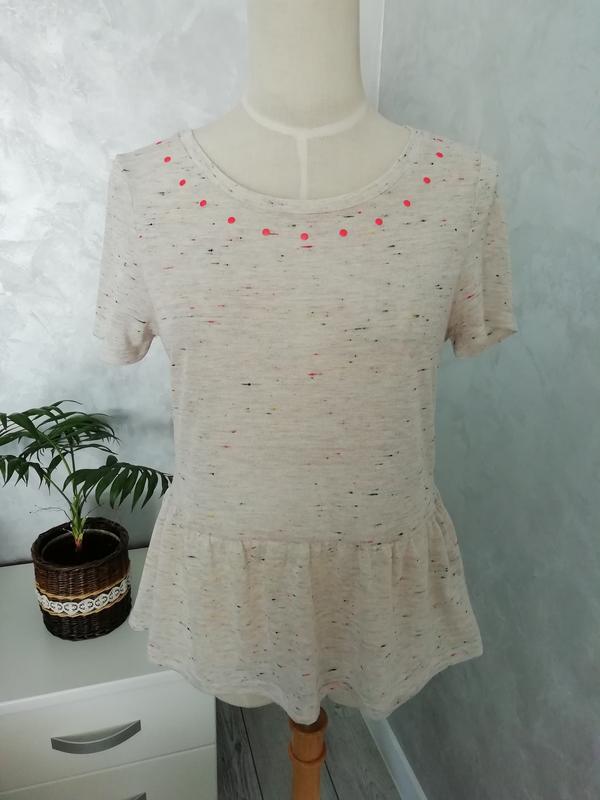 Футболка з баскою. Довжина 56, плечі 38, ширина 45.