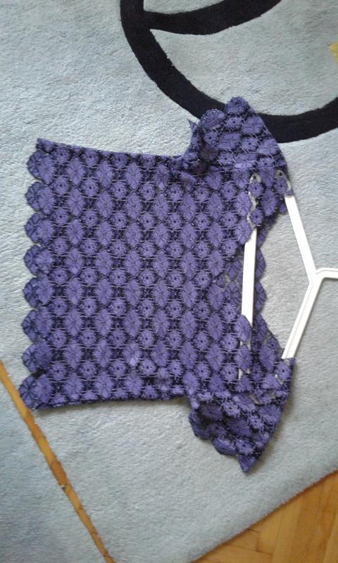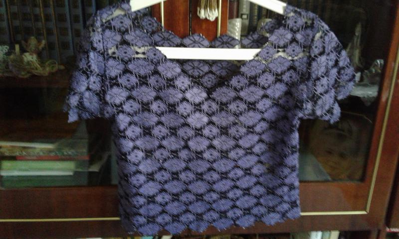 Ажурный летний стрейчевый гипюр( не дает усадку при стирке-качественный), носился парц раз, плечи 44см-приспущенны и на одно плече, ПОГ 47см, длинна 42см,держит форму как задумаете.К сож.бирочки срезала.Куплен в Польше магазин.Может на небольшую М ку