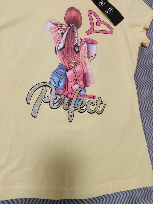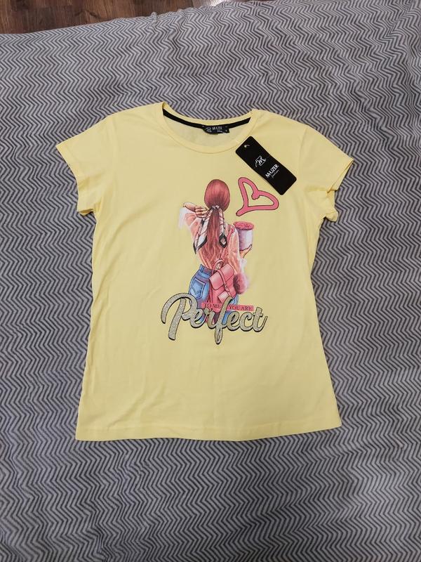 красивая футболочка, в живую цвет ярче, надпись с блестками, размер с, новая🌷❤