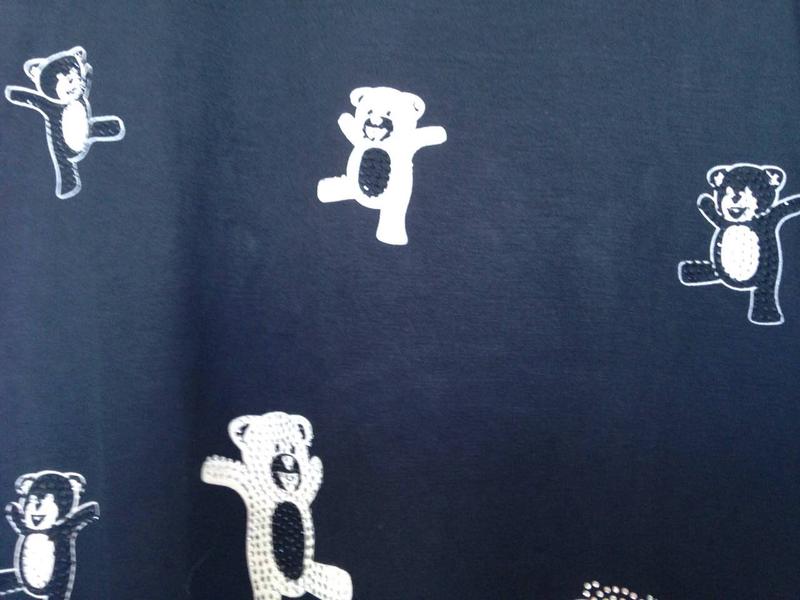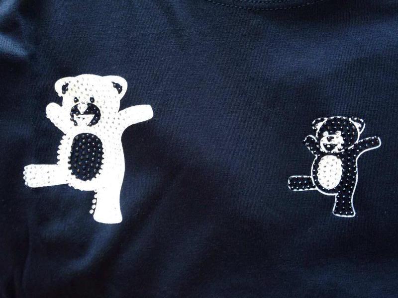 Футболка Philipp Plein черного цвета, с милыми, прикольными мишками, расшитыми черными и белыми стразами. Футболка отличного качества, шикарно смотрится по фигуре, яркая, стильная, модная! Размер S, по длинне 69 см., по плечам 36 см., обьем груди 78 см. Футболка немного потянется.
