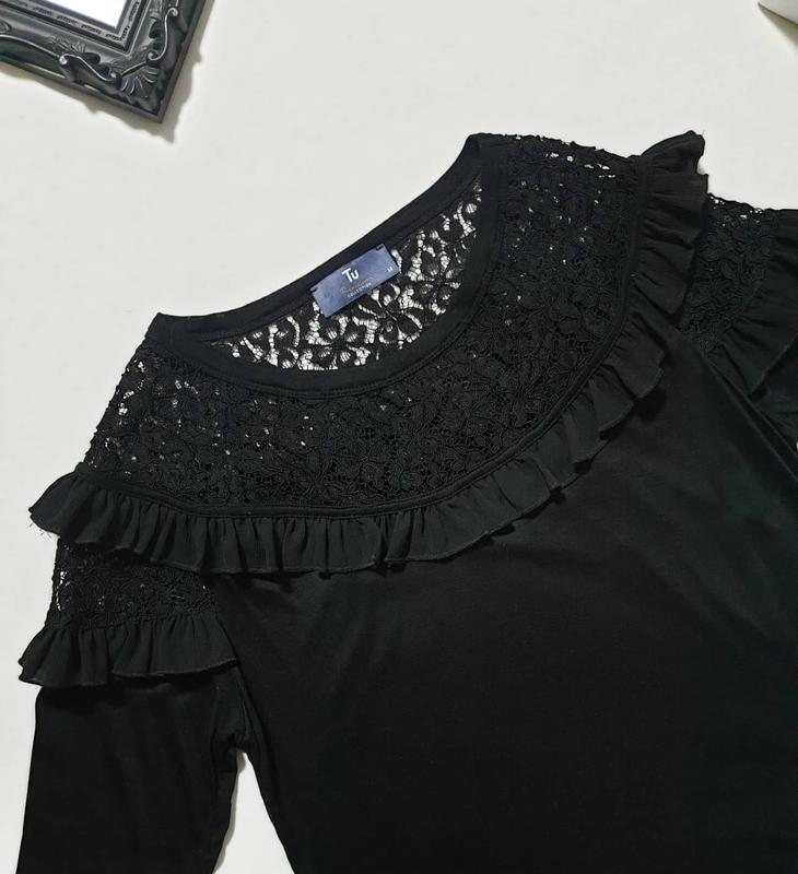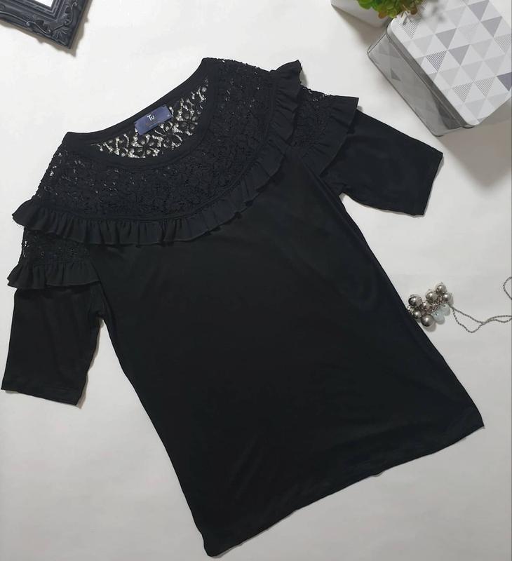 🔥Футболка из тонкого мягкого трикотажа с кружевом и рюшами из шифона. Рукав до локтя.🔥