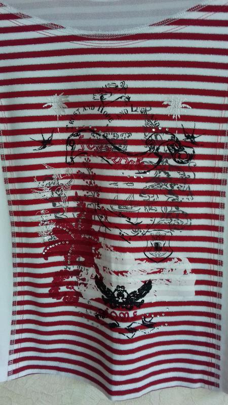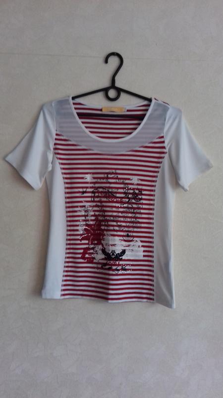 футболка с принтом в полоску, ткань вискоза тянется. замеры :