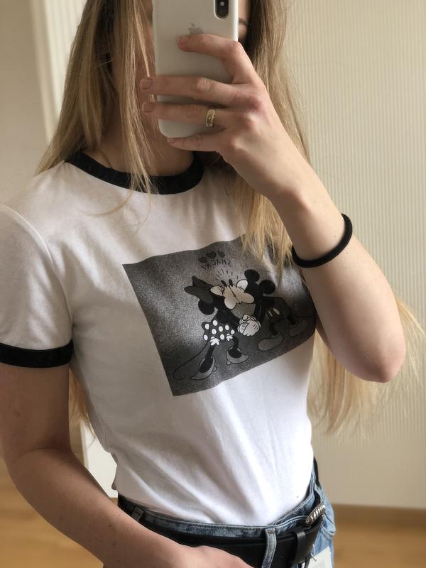 В наличие 2 футболки из серии Дисней. Первая в размере И вторая (на мне) в размере S. Мом параметры: от 68 см, ОГ 90 см