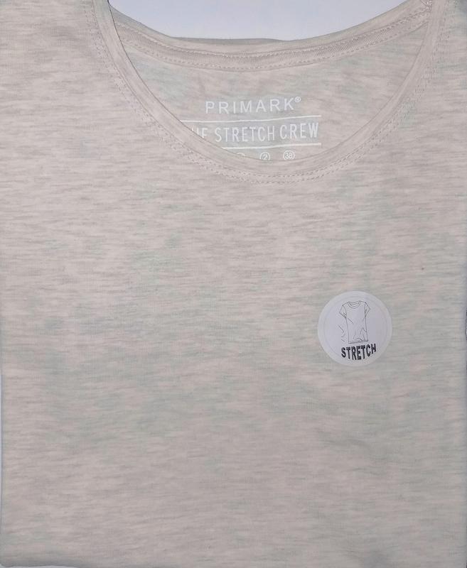Женская стрейчевая трикотажная футболка серо-бежевого цвета Primark (Англия). Тонкий трикотаж, зауженный крой.