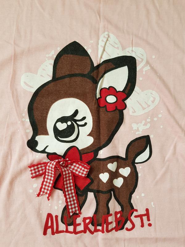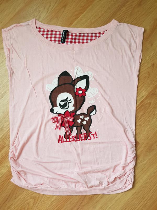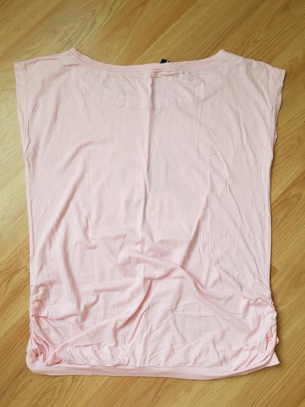 Красивая. милая футболочка, новая, с упаковки, бантик пришит, по бокам резиночки, хорошо будет для беременных. Длина по средине спинки 63 см, плечи спущены 53 см, ширина бретели 12 см, подмышки 50 см, низ 47 см, мягкие сборки по бокам резиночка 11 см.