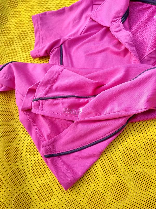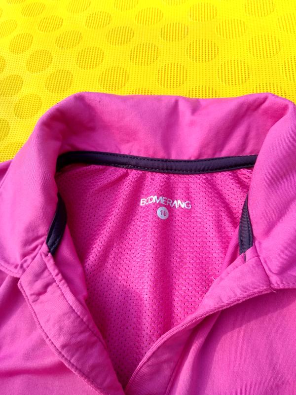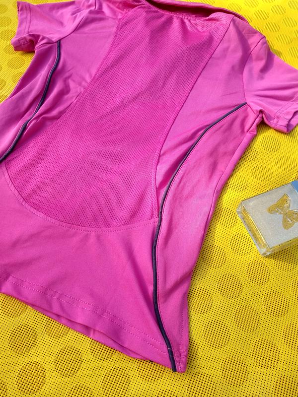 Фирменная футболочка для спорта, Испания. Отличное качество, сбоку разрезики, сзади вставка из сетки. Размер 10. Замеры: ширина плеч 30см, ПОГ 36см, длина 49см. Состояние отличное, но она не такая яркая как на фото поучилась.
