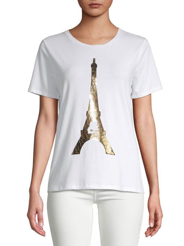 Крутая летняя футболка белого цвета Karl Lagerfeld. 100% оригинал, куплена в Америке. Новая, с бирками и ценником 50$. Спереди аппликация золотого цвета, сзади подпись Карла. Размер L. Продаю, так как мала. Цена 900 грн. Торга нет.