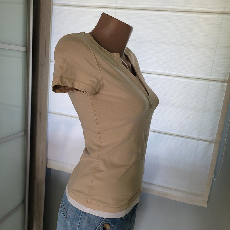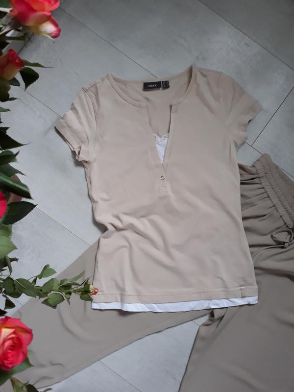 Ніжна нюдова футболка. Білі частини - обманка, пришито.