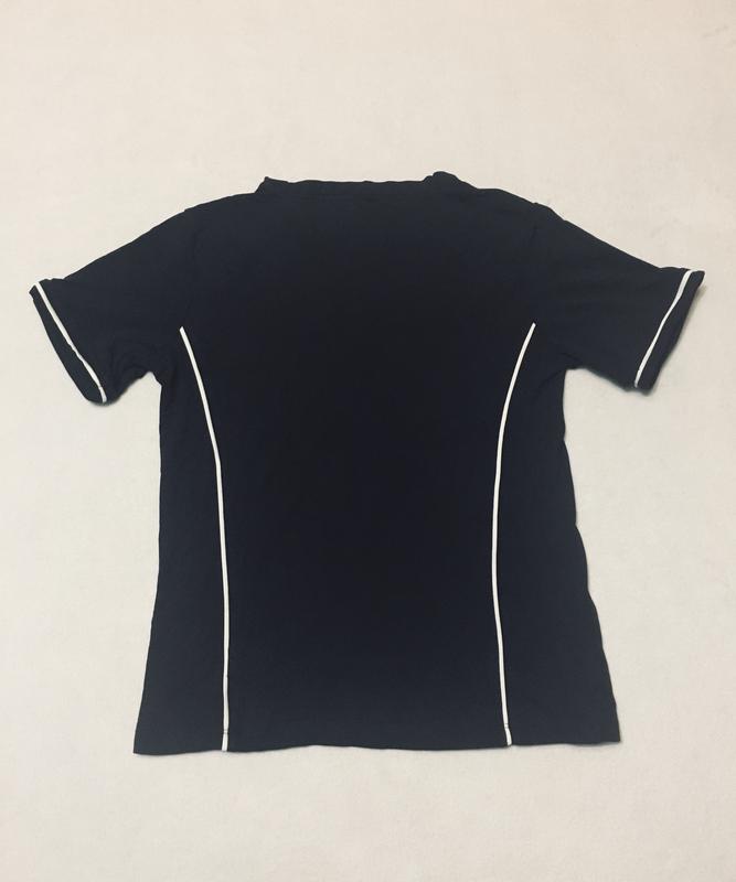 Футболка спортивна чорного кольору, матеріал гарно тягнеться, приємний до тіла.Заміри:Довжина - 53 смНапівобхват грудей - 41 смНапівобхват талії - 39 смДовжина рукава - 18 см