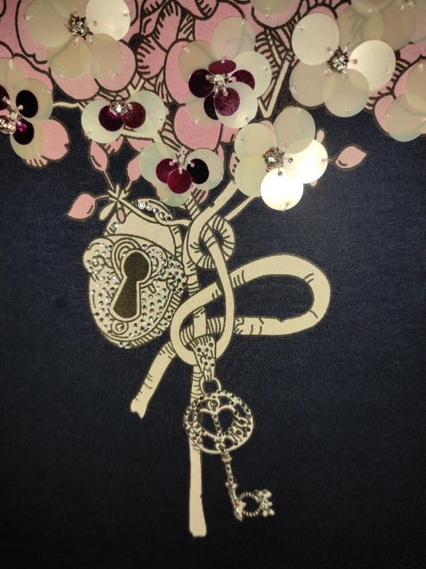 Eur 38 benetton футболка вільна жіноча синя з пайєтками