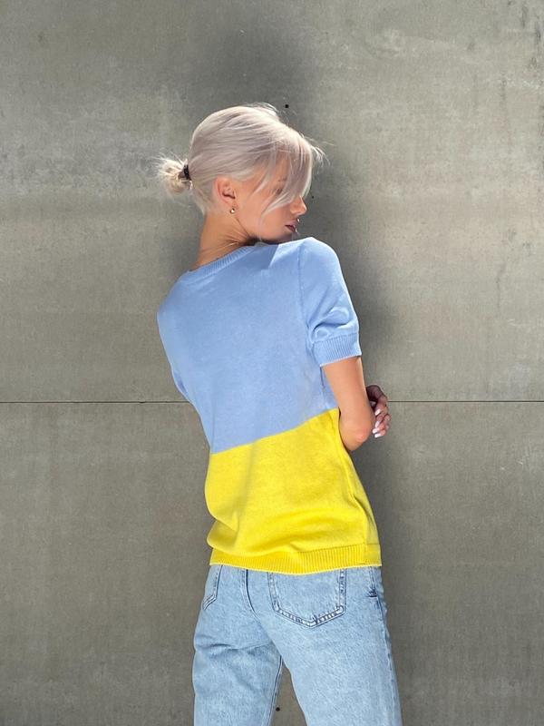 Арт 493ФУТБОЛКА ВЯЗАНА UKRAINA 🇺🇦Неймовірно стильна, та символічна в’язана ФУТБОЛКА Розмір: S/M, M/L