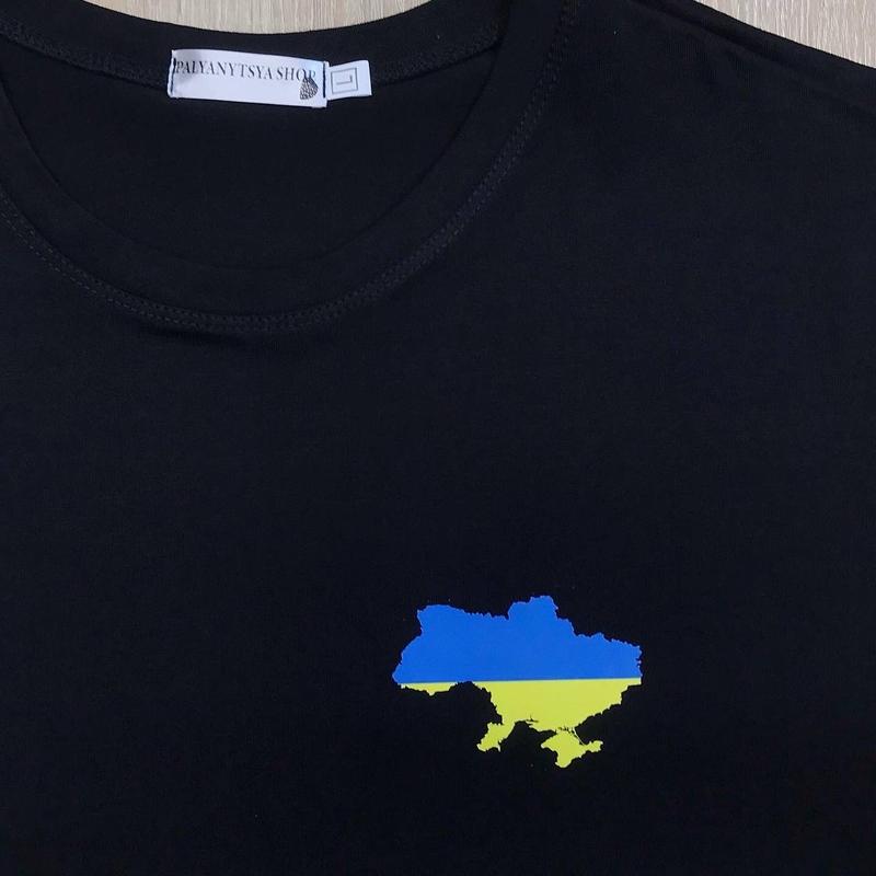 Футболка « Карта України»Розмір: XL / 50Тканина: 95% бавовни + 5% еластану Колір: чорнийВироблено в Україні🇺🇦