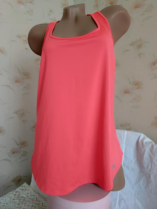 Женская яркая спортивная майка из коллекции Under Armour. Модель выполнена из быстросохнущего материала. Майка создана для того, чтобы преодолевать километры в жару и постоянно сохранять прохладу. Особенности: Свободный крой. Круглый вырез. Фирменный логотип и надпись Under Armour. Гладкий на ощупь двухслойный материал HeatGear быстро сохнет, а также очень легкий. Модель выполнена из эластичной ткани с дышащими свойствами. 4-way stretch обеспечивает материалу гибкость и растяжение в четырех направлениях, что значительно повышает комфорт и не сковывает движения. Нерегулируемые бретели не соскальзывают с плеч, обеспечивая комфорт во время занятий спортом. Состояние идеальное. Бирка срезана. Следы ношения отсутствуют. Дефектов нет.