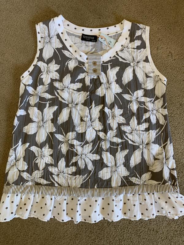 Замечательная легкая французская маечка) ПОГ-58см НОС-65см( затягивается на кулиску) длина 72см. Стан новой. Эвроп размер 42-44 (наш 50-54) Отличная вещь!