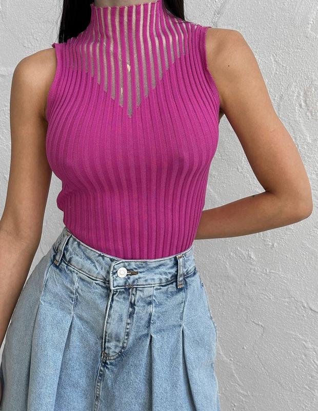 Стильные майки в сеточку 🤍• материал: хлопок + сеточка• размер универсальный • цвета: черный, белый, малиновый• длина: 46 см00477Код5