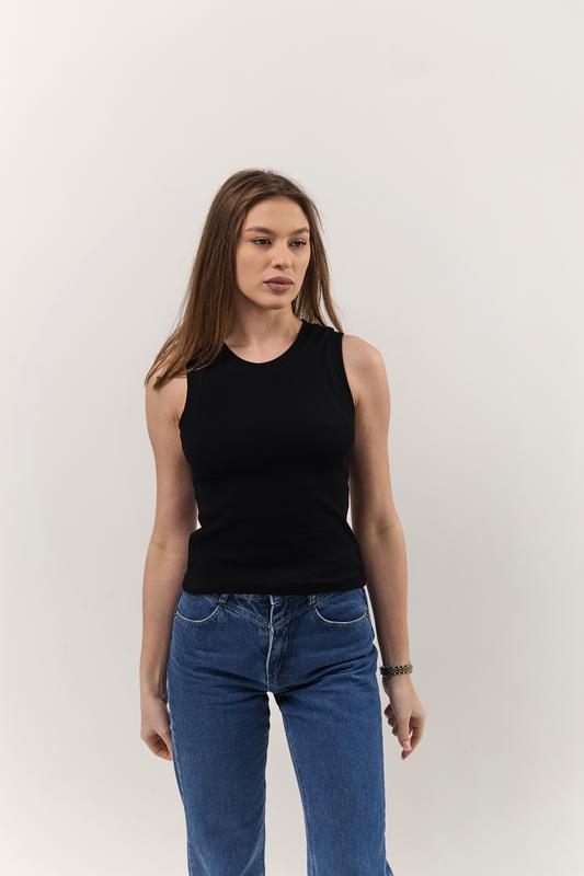 Майка чорна в рубчик жіноча