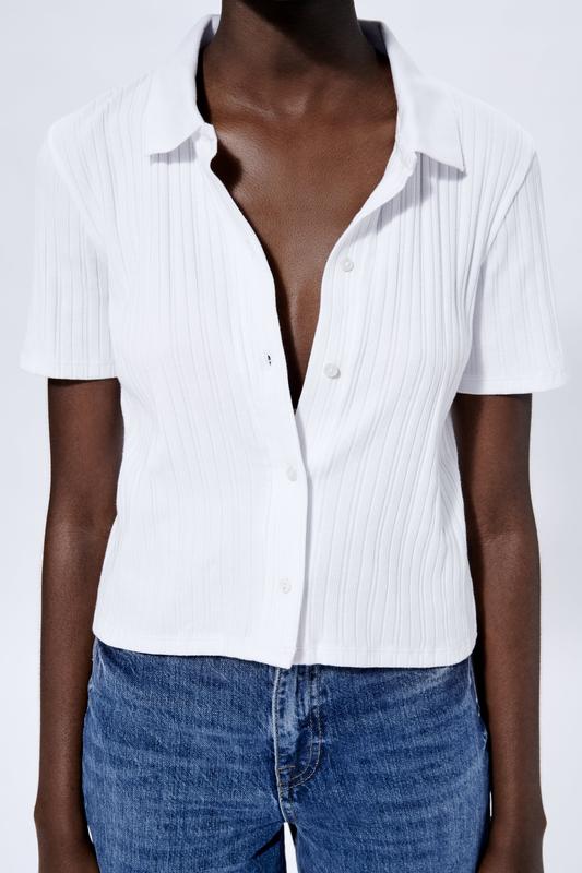 Zara белая футболка поло в рубчик, размер S, можно небольшую М, оригинал с бирками Есть ещё в чёрном цветеСпрашивайте, отвечу на все вопросы 🌷