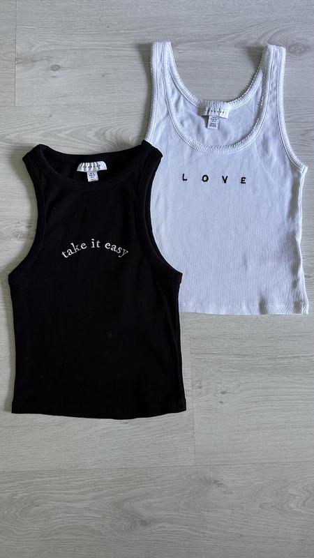 Укорочені майки топ в рубчик S/XS В отличном состоянии! Черная: длина 42см Пог 29-47см, гарно тягнеться, тканина котон рубчик! Не запрана! Белая: длина 44см Пог 29-47см Гарно тягнеться, рубчик! За 2 майки 300грн
