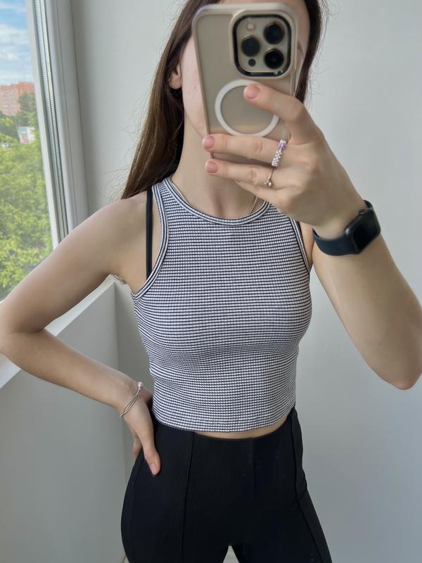 Трикотажный топ кроп в мелкий рубчик 🤩🧶👕👖