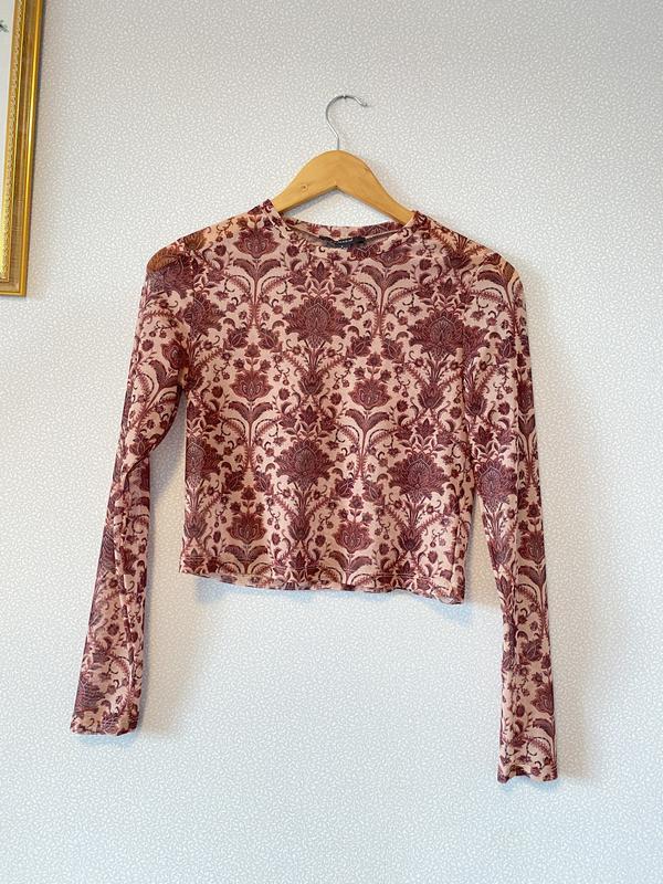 Новый (сток). Ткань тонкая, немного просвечивается. Тянется.Замеры: от подмышки до подмышки - 40 см, пот - 38 см, длина - 44 см, длина рукава - 60 смСостав: 94% полиэстер, 6% эластин