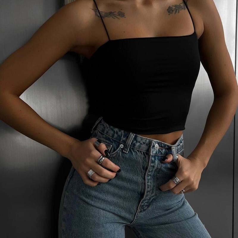 Топи на тонких бретелях.Очень практичные, удобные.Материал - микродайвинг.Цвет - черный, белый, розовый.Размер - 42-44, 46-48.Качество и пошив