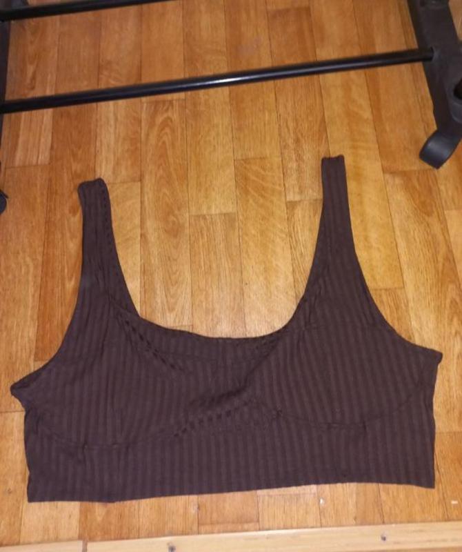 Короткий топ из мягкого трикотажа в рубчик. Вырез сердечком и формованные чашечки.