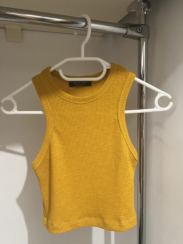 Топ с рюшами, укороченный топ с рукавами горчичный