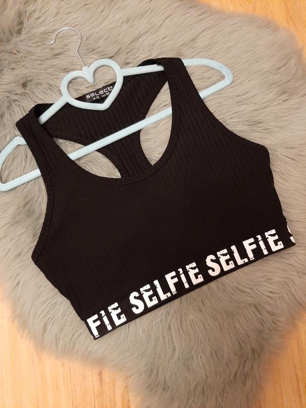 Крутой черный топ в рубчик с широкой резинкой и надписями Select♡ размер 12♡ состояние идеал