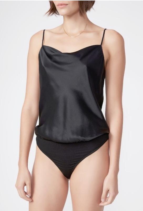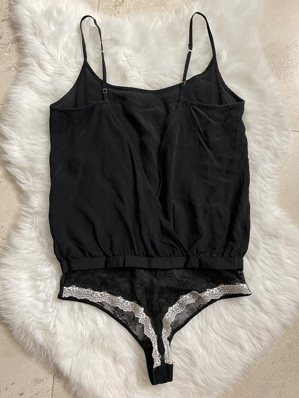 Красивый легкий полупрозрачный боди с открытой спинкой. Ажурные черные трусики с белой кружевной окантовкой застегиваются на три кнопки. Пришивная шелковая майка с открытой спиной и регулируемыми тонкими бретелями. Золотая коллекция от Intimissimi.