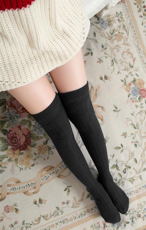 Женские гольфы выше колен с текстурой вязки. Хорошо тянутся, приятные к телу)