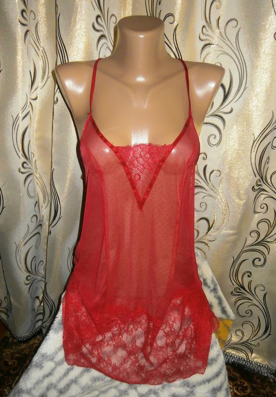 Спокуслива нічна сорочкаМереживна прозора нічна сорочка червоного кольору Довжина бретелей регулюється.Розмір - S/М Заміри: напівобхват грудей 40 см, довжина з бретелями - 80 смСклад: 100% поліестер. Стан ідеальний. Бірка зрізана.