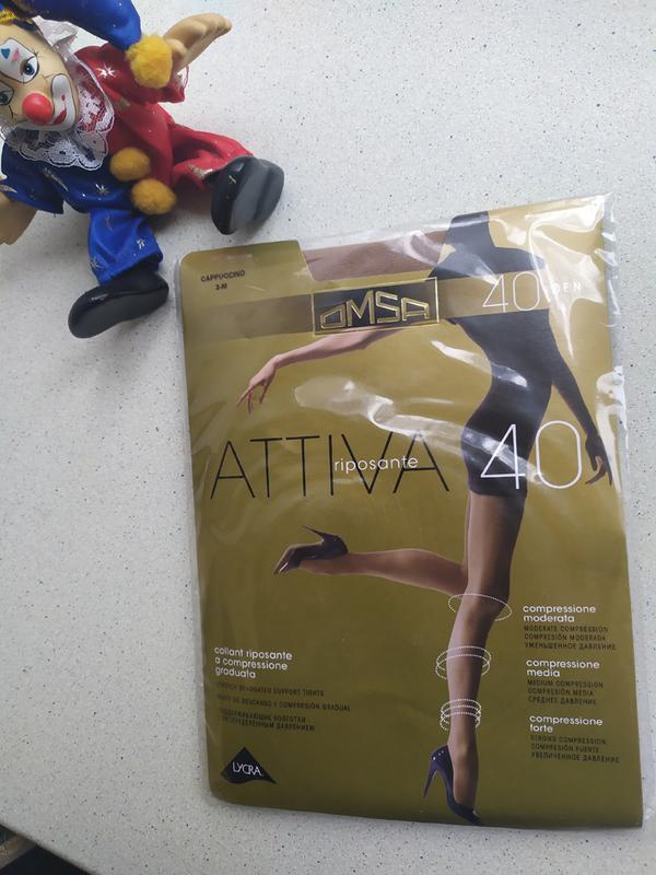 ATTIVA 40 - средней плотности прозрачные эластичные колготки на каждый день серии RIPOSANTE, с лёгким поддерживающим эффектом. С классической посадкой - на талии. Специально распределённое давление по ноге, большее внизу ноги в области голени и ослабевающие к верху.
