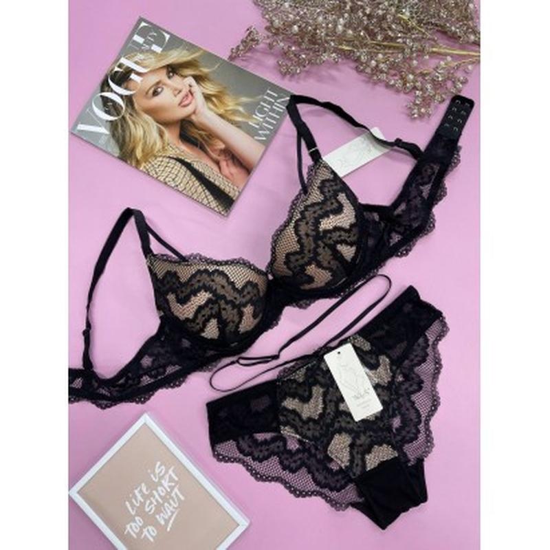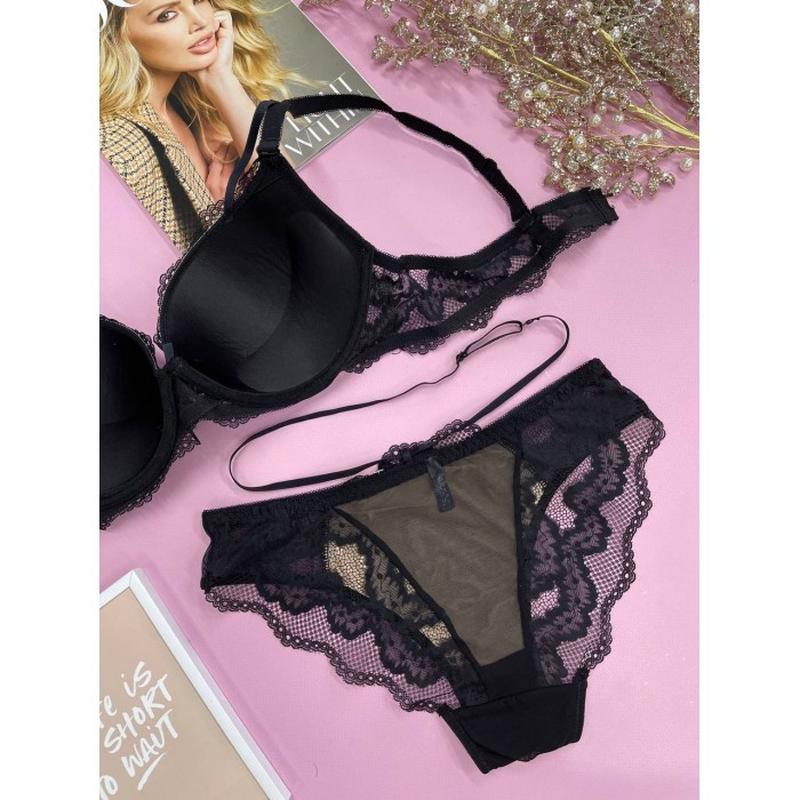 Роскошный кружевной комплект нижнего белья. Гладкий бюстгальтер с ажурной