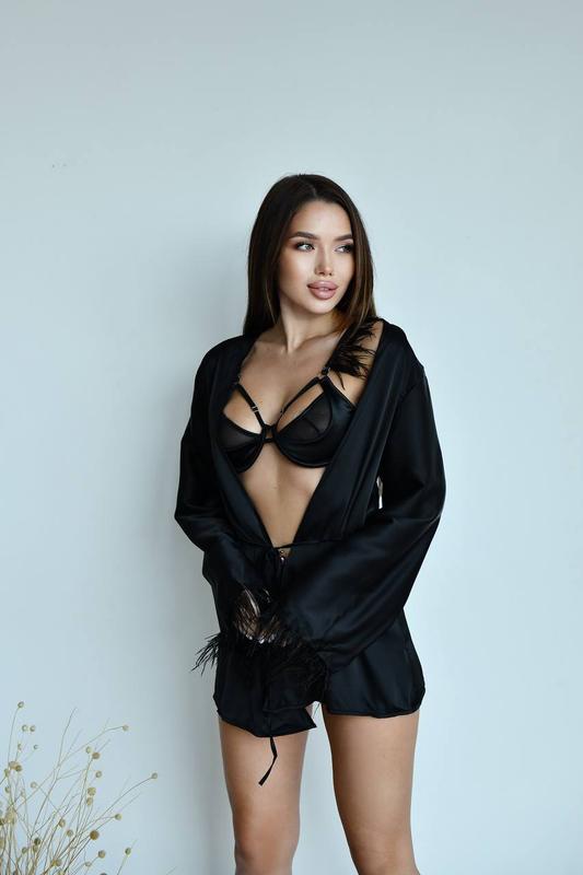 ❤️🔥Незабутній комплект з пір'ячком та халатиком❤️🔥