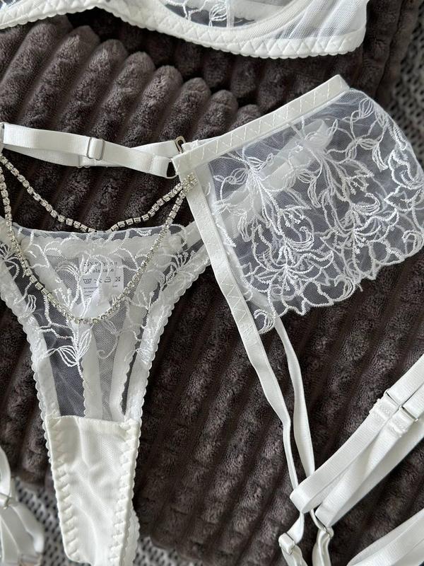 ▪️В комплект входят: бюстгальтер, трусики стринги, пояс для чулок, гартеры