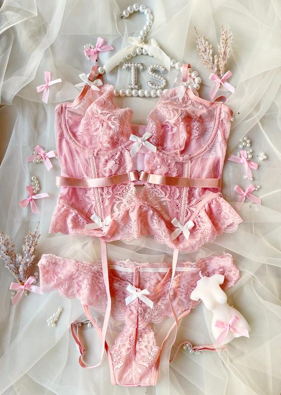 В комплект входять також повʼязочки на ніжки. Дуже ніжний та жіночний комплект білизни, який стане Вашим фаворитом в білизняному гардеробі. Відгуки Ви можете отримати в особистих повідомленнях, так як маю магазин в інст. і тільки почала продавати на шафі