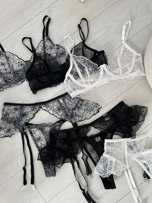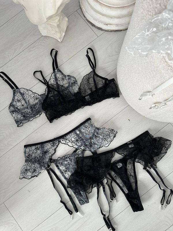 Нежный, привлекательный, сексуальный, игривый -жно долго рассказывать какой это комплект, но вы все видите и сами. Чашечки на косточках, все шлейки на регуляторах. Пояс входить до комплекту. Отдельно можно приобрести чулки.